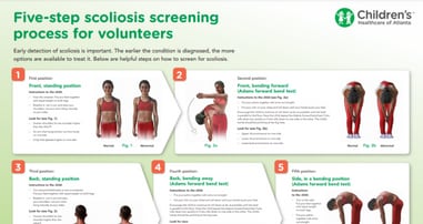 The Scoliosis Screening Program at Children’s Healthcare of Atlanta bridges communication between children and teens, their families, their school, and their doctors. Georgia requires scoliosis screening programs at schools be authorized. This page will help you establish a successful program. We support our community by coordinating referrals to our pediatric orthopedic surgeons for children with positive scoliosis screenings. Our physicians will evaluate and treat infants through young adults.