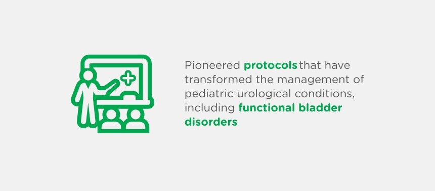 Learn About EmoryOur team of pediatric urologists has published more than 500 peer-reviewed articles in literature and book chapters. We are advancing device innovation as one of the first pediatric urology programs to refine robot-assisted advanced surgical techniques, setting a benchmark for minimally invasive care. In addition, we are contributing technology like the Soluu™ TENS device for enuresis and other groundbreaking therapies, supported by NIH, FDA and pediatric device consortium grants. Our team pioneers protocols that have transformed the management of pediatric urological conditions, including functional bladder disorders. Our program also trains the next generation of pediatric urology experts in our Pediatric Urology Fellowship. Learn more about the breadth of our knowledge and examples of our published research that have changed how the following urologic conditions and procedures are managed.